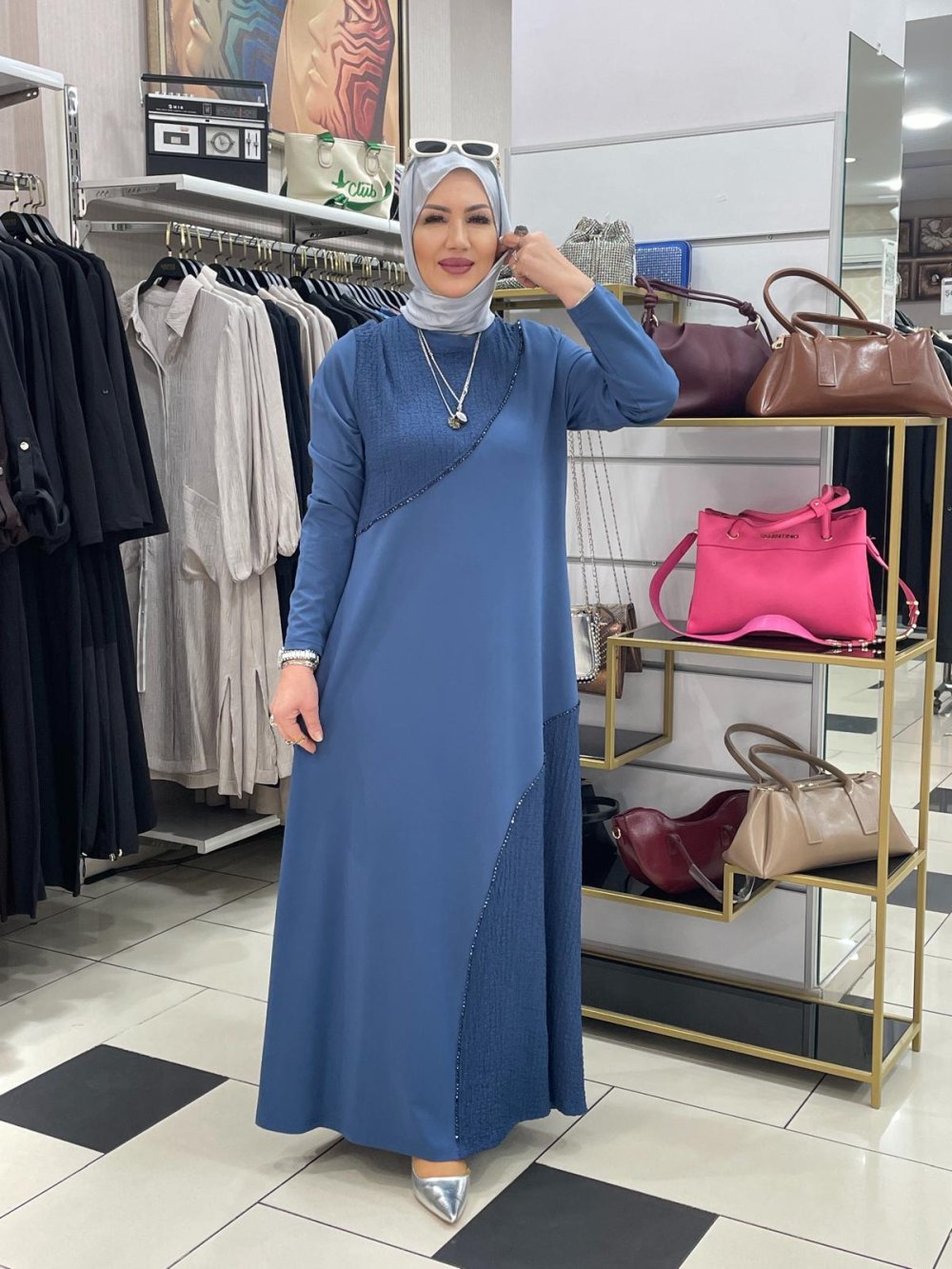 Banbu kumaş elbise Mavi