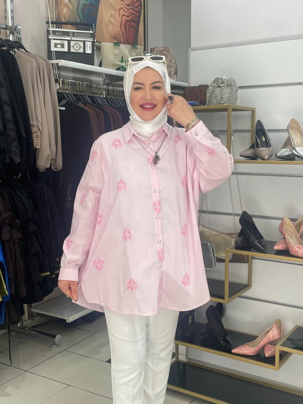 Çiçekli gömlek Pudra
