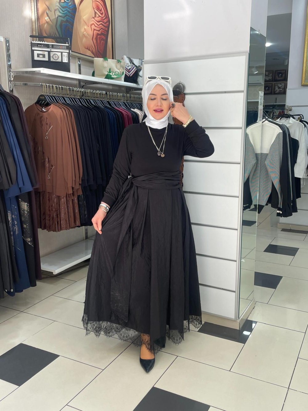Dantelli elbıse Siyah